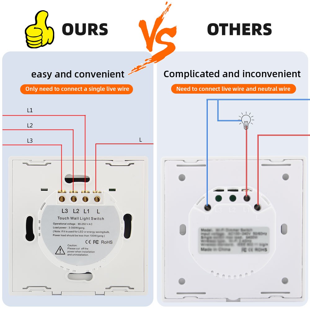 Smatrul Touch Switch Light Wall Light Switch 86 Type 1 2 3gang Black White Tempered Glass Panel 110 240v No Need Neutral Line Shopee Singapore
